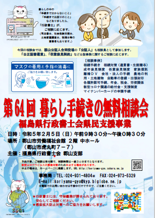 郡山支部で「第64回暮らし手続きの無料相談会」を開催します