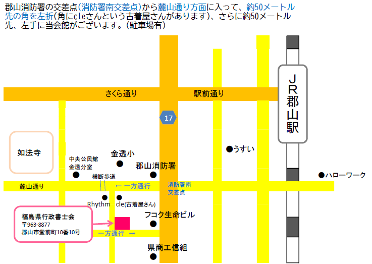 場 所:福島県行政書士会館 1階「相談室」(郡山市堂前町10番10号)